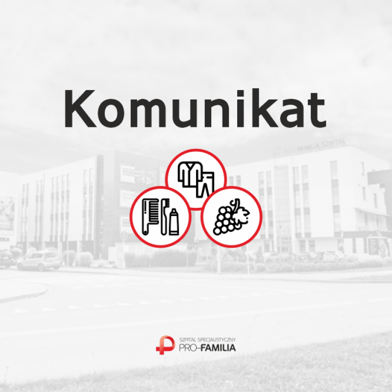 Od dnia dzisiejszego przekazywanie Pacjentom przebywającym w szpitalu niezbędnych rzeczy będzie możliwe za pośrednictwem Izby Przyjęć: