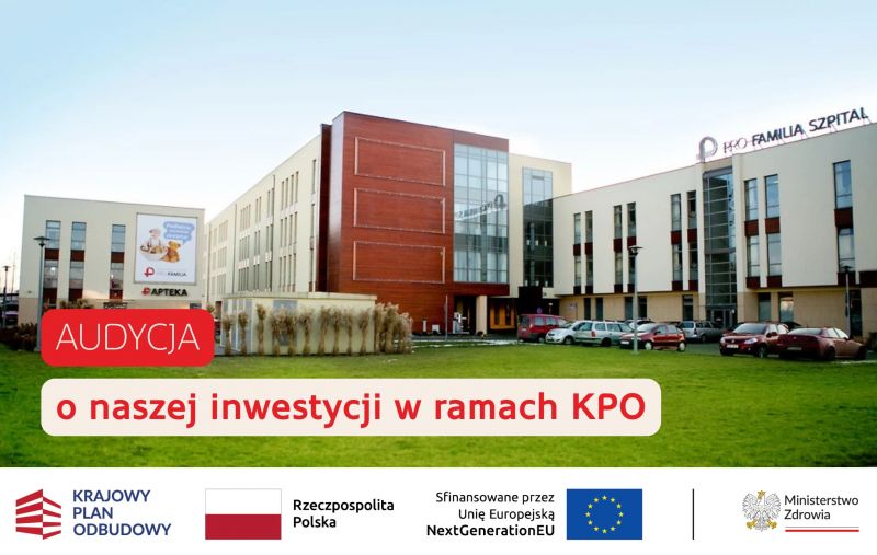 Już w najbliższy wtorek, 11 listopada o godz. 17:45, na antenie TVP3 Rzeszów zostanie wyemitowana audycja poświęcona naszej inwestycji "Rozbudowa Szpitala Specjalistycznego PRO-FAMILIA w zakresie udzielania świadczeń onkologicznych wraz z wymianą rezonansu magnetycznego i utworzeniem pracowni medycyny nuklearnej w postaci SPECT CT", realizowanej w ramach Krajowego Planu Odbudowy i Zwiększania Odporności (KPO).